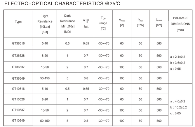 plastic package photoresistors