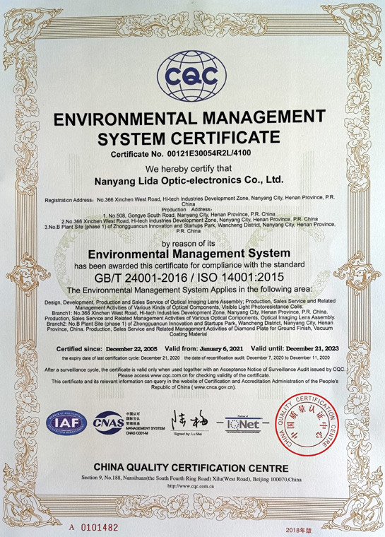 環(huán)境管理體系認(rèn)證證書(英文)